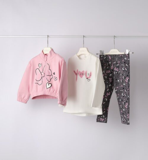 Completo per bambina Sarabanda in cotone, composto da felpa, maglietta e leggings.