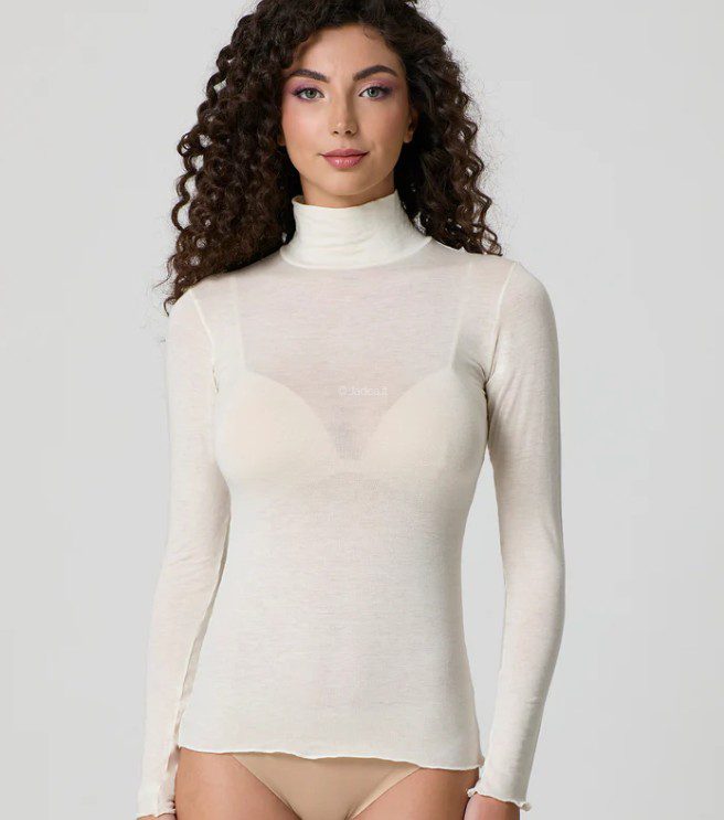 Maglia a manica lunga con collo alto, realizzata con morbido Cashmere. Calda e avvolgente, nonostante la sua piacevole leggerezza. Tutto il comfort di un caldo abbraccio e una sensazione di massimo calore e benessere lunga tutto l’inverno. Tessuto elastico e vellutato, per un delicato effetto seconda pelle.