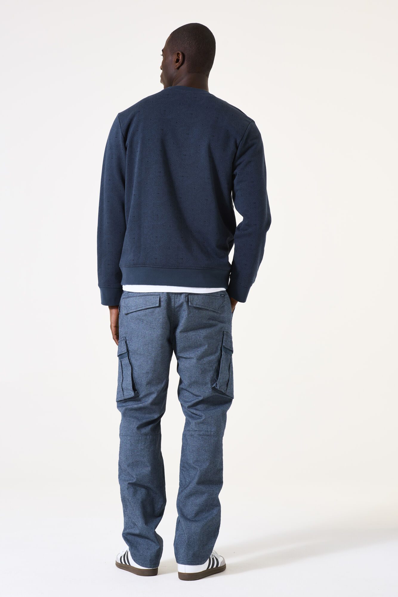 Questo capo è realizzato in 50% cotone, 30% cotone riciclato e 20% poliestere, offrendo una vestibilità comoda e traspirante.