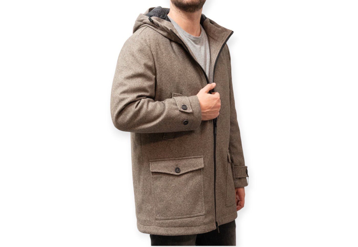 PARKA UOMO IMBOTTITO EFFETTO LANA fango