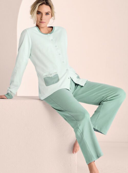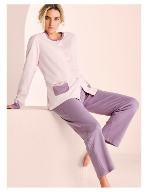 Pigiama aperto girocollo, manica lunga, interlock di cotone. MATILDE