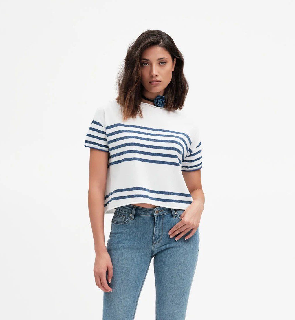 T-SHIRT filo di cotone righe bluette